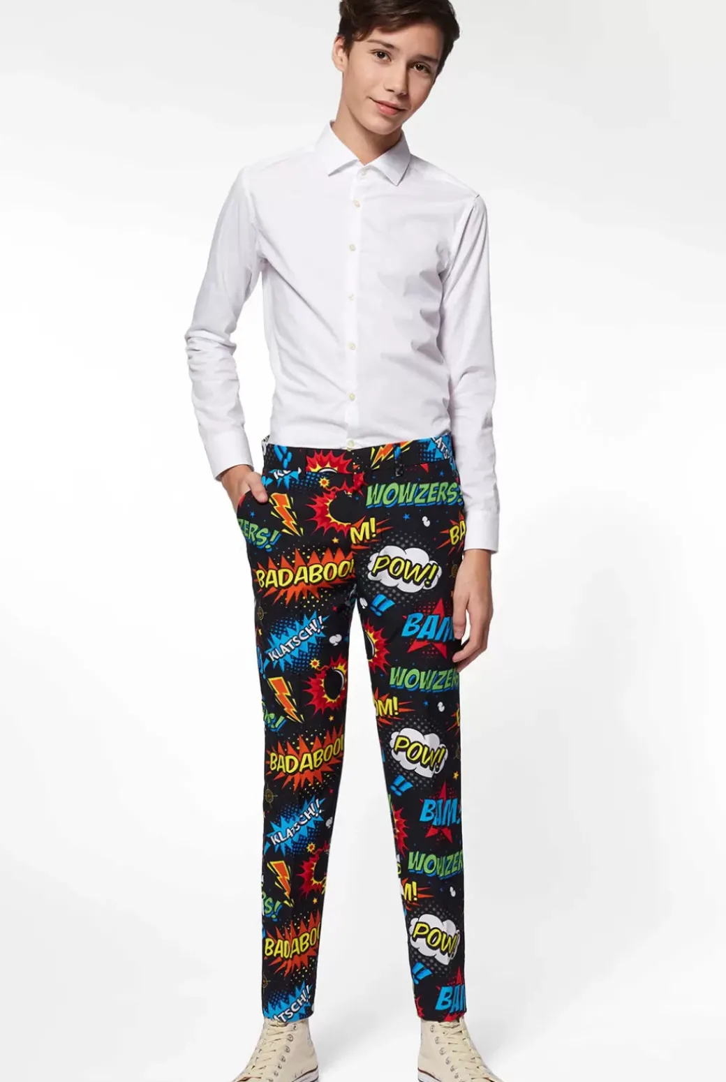 Wowsers! Say Goodbye To Those Boring Black And Blue Suits And Say Hello To Our Comic Book Themed Badaboom Suit. Whatever Kind Of Event You’Ll Be Going To, This Suit Will Make Sure Your Attendance Won’T Go Unnoticed. Badaboom Badabeng!
