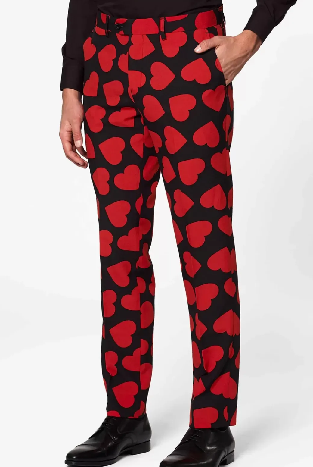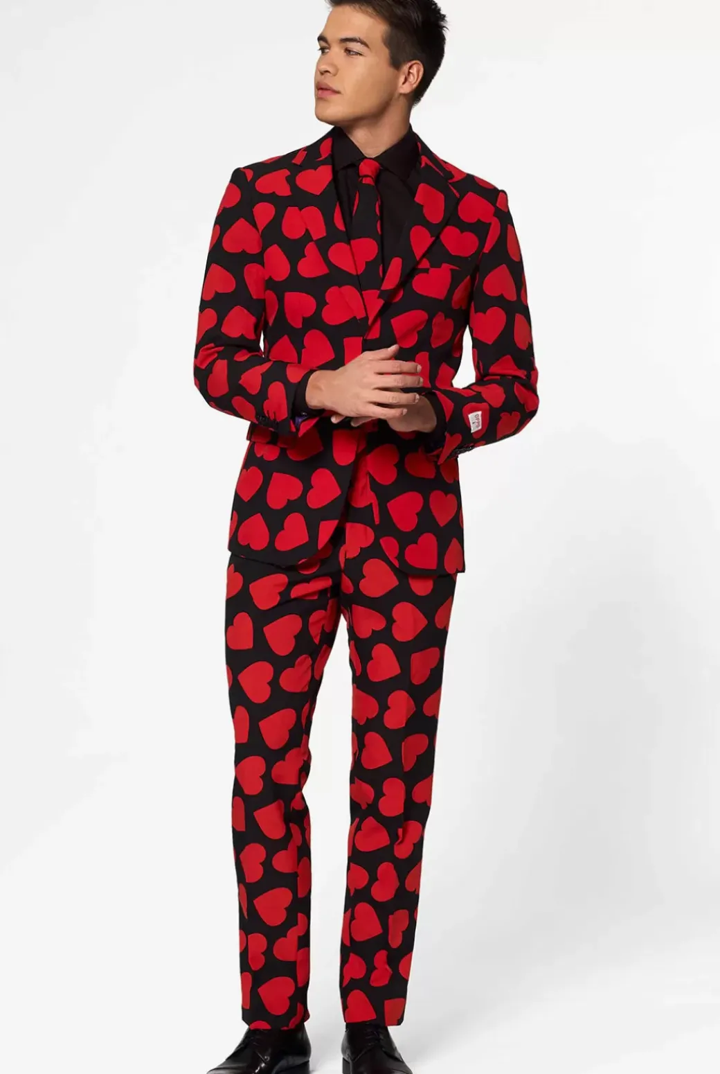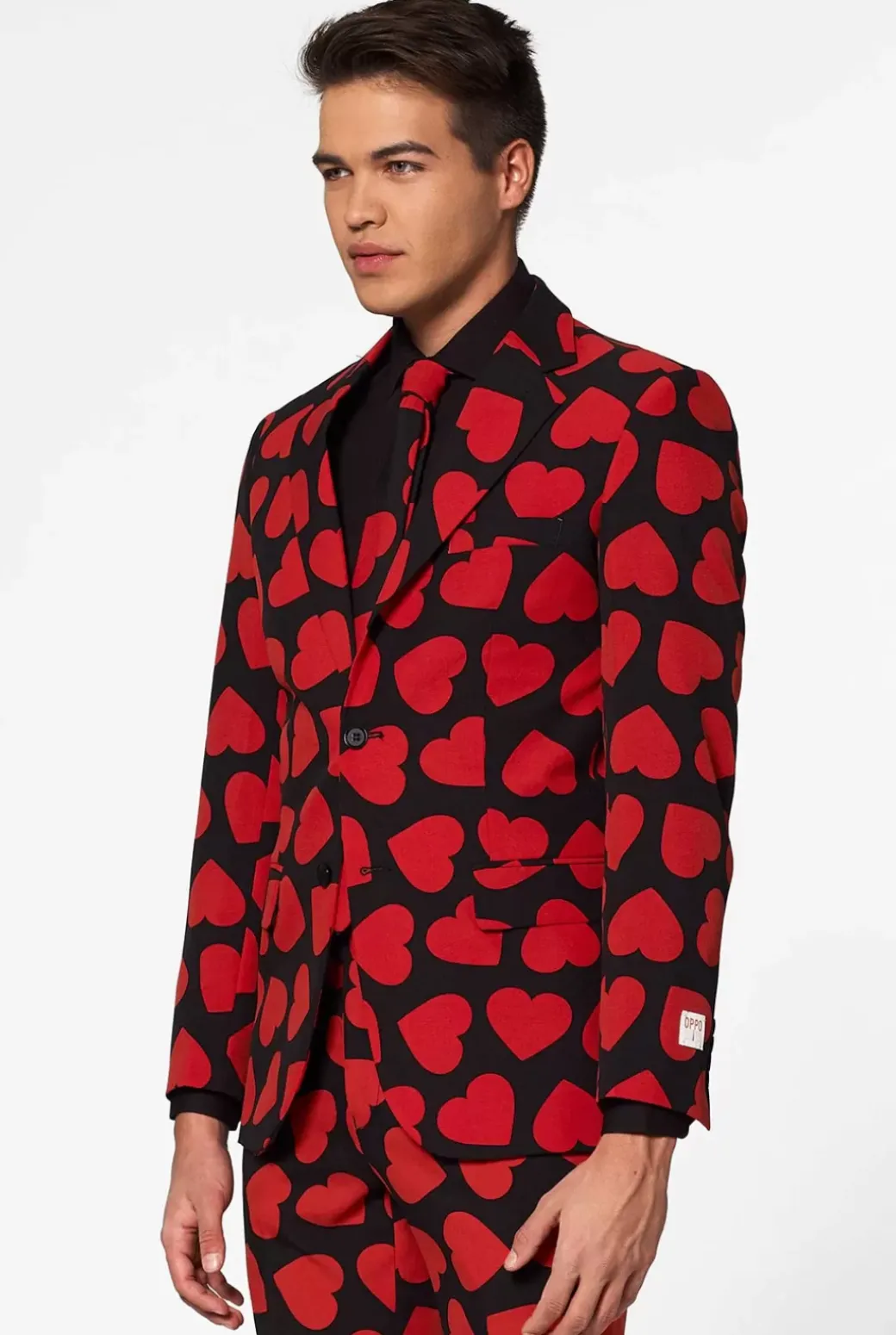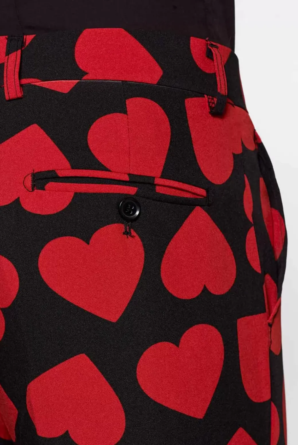 If You Want To Be Treated Like A King, You Must First Dress Like A King. Doing So Has Never Been Easier Than With Our King Of Hearts Suit. This Stylish Black Suit With Red Hearts Will Give You The Royal Appearance You Deserve.