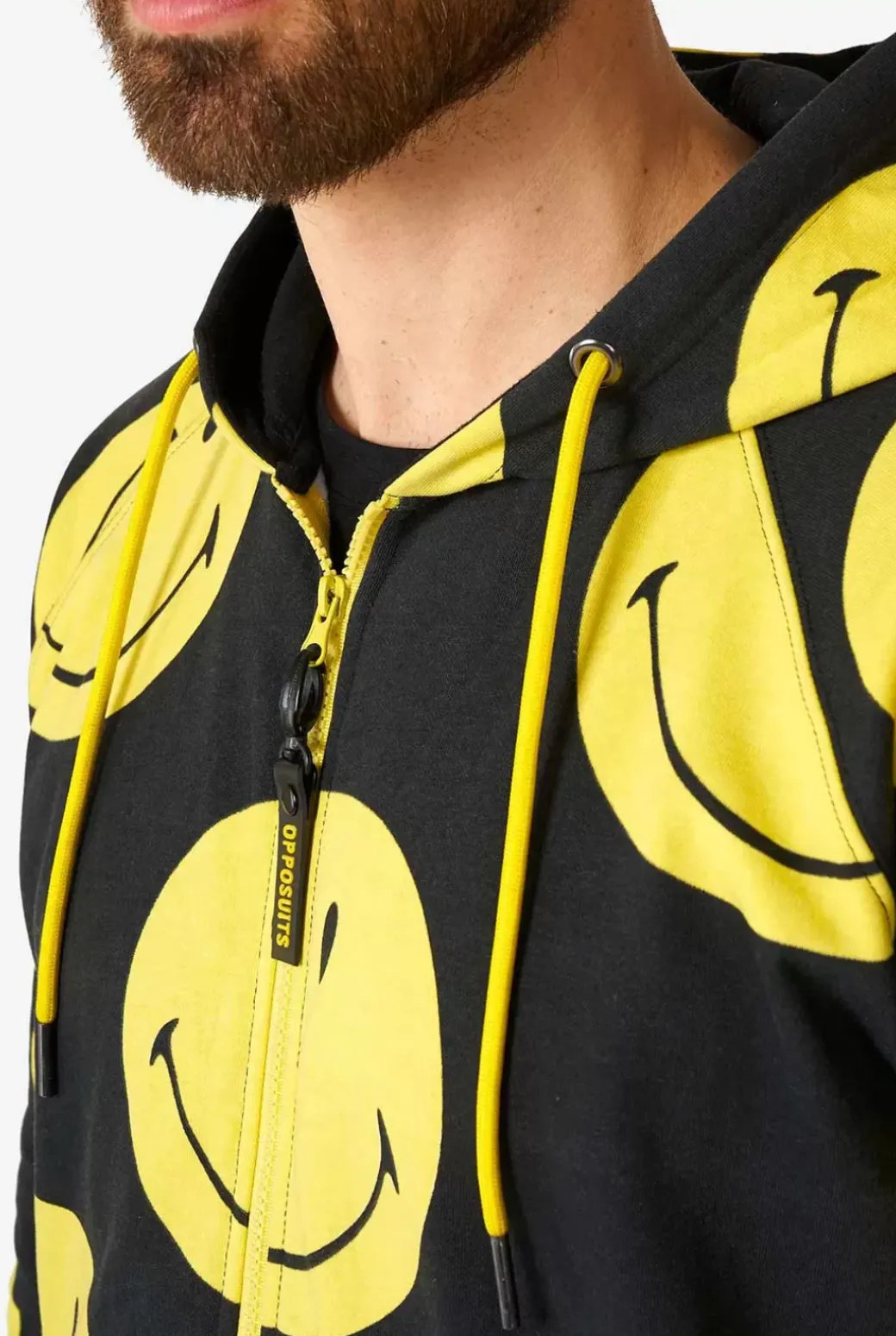 The Unisex Smiley® Classic Opposuits Onesie Features Two-Way Zippers, High-Quality Kangaroo Pockets And Side Pockets. The Hoodie Has Adjustable Cords For A Perfect Fit.