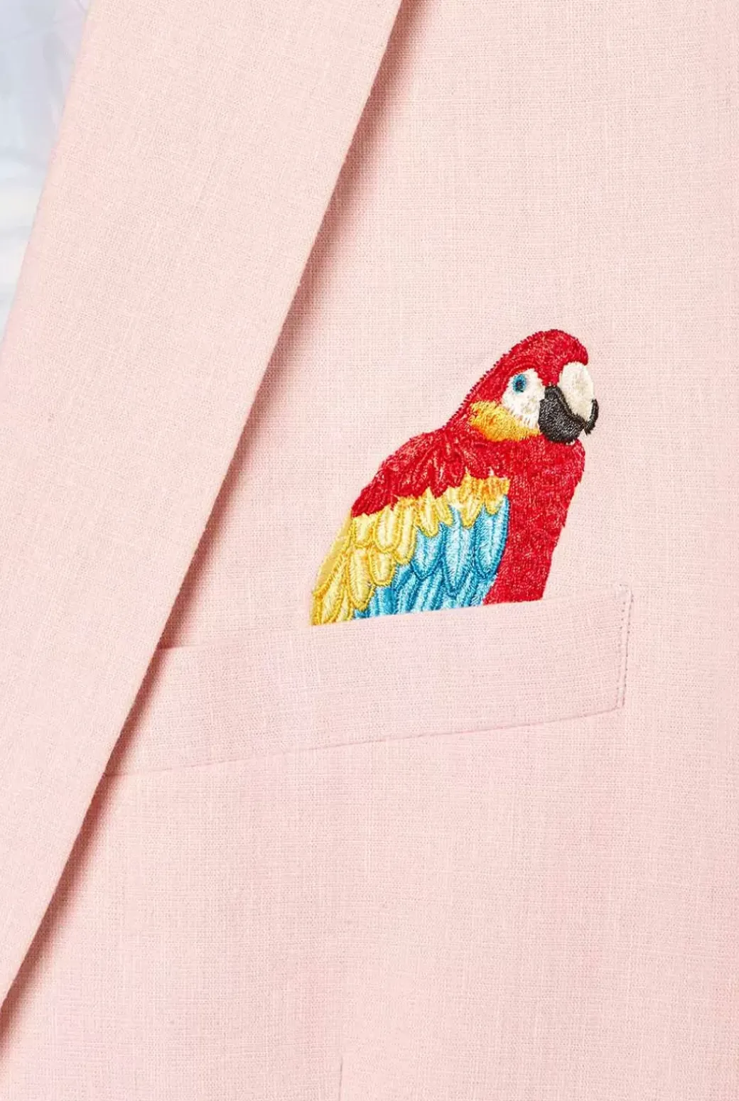 Spring And Summer Are The Seasons To Show Your Vivid Style Choices. This Soft Pink Blazer Is Made Of A Breezy, High-Quality Cotton-Linen Blend And Therefore Perfect To Keep You Cool While Maintaining A Sharp Look. Topped Off With Eye-Catching Embroidered Parrots And A Palm Leaves Lining, This Jacket Has It All: Fun, Luxury And Style.