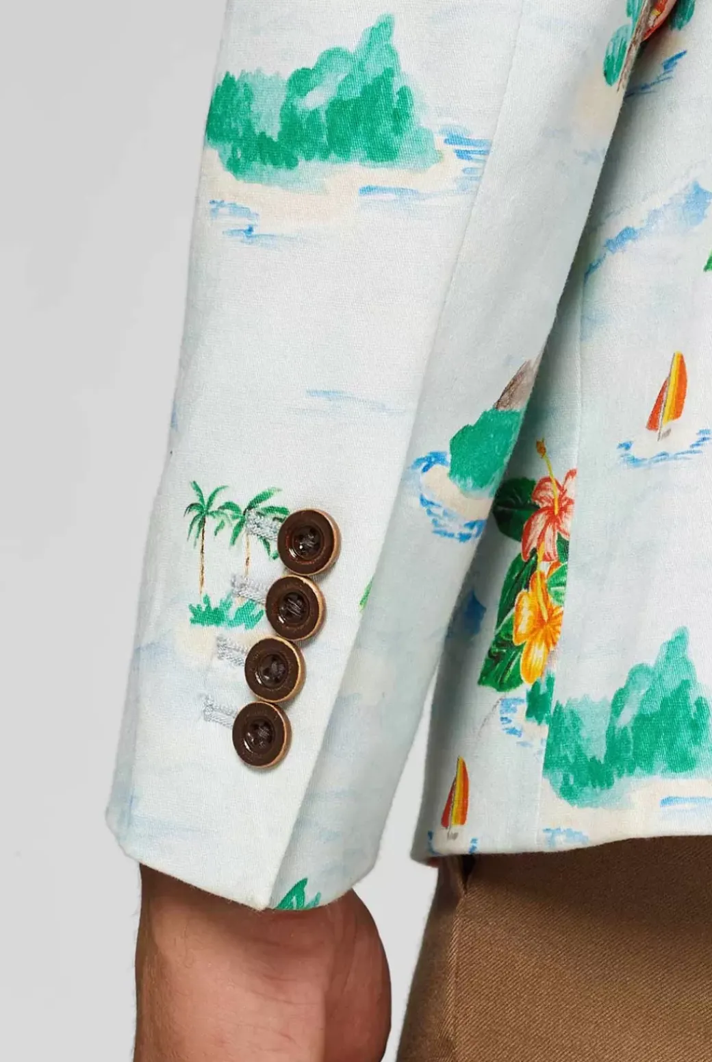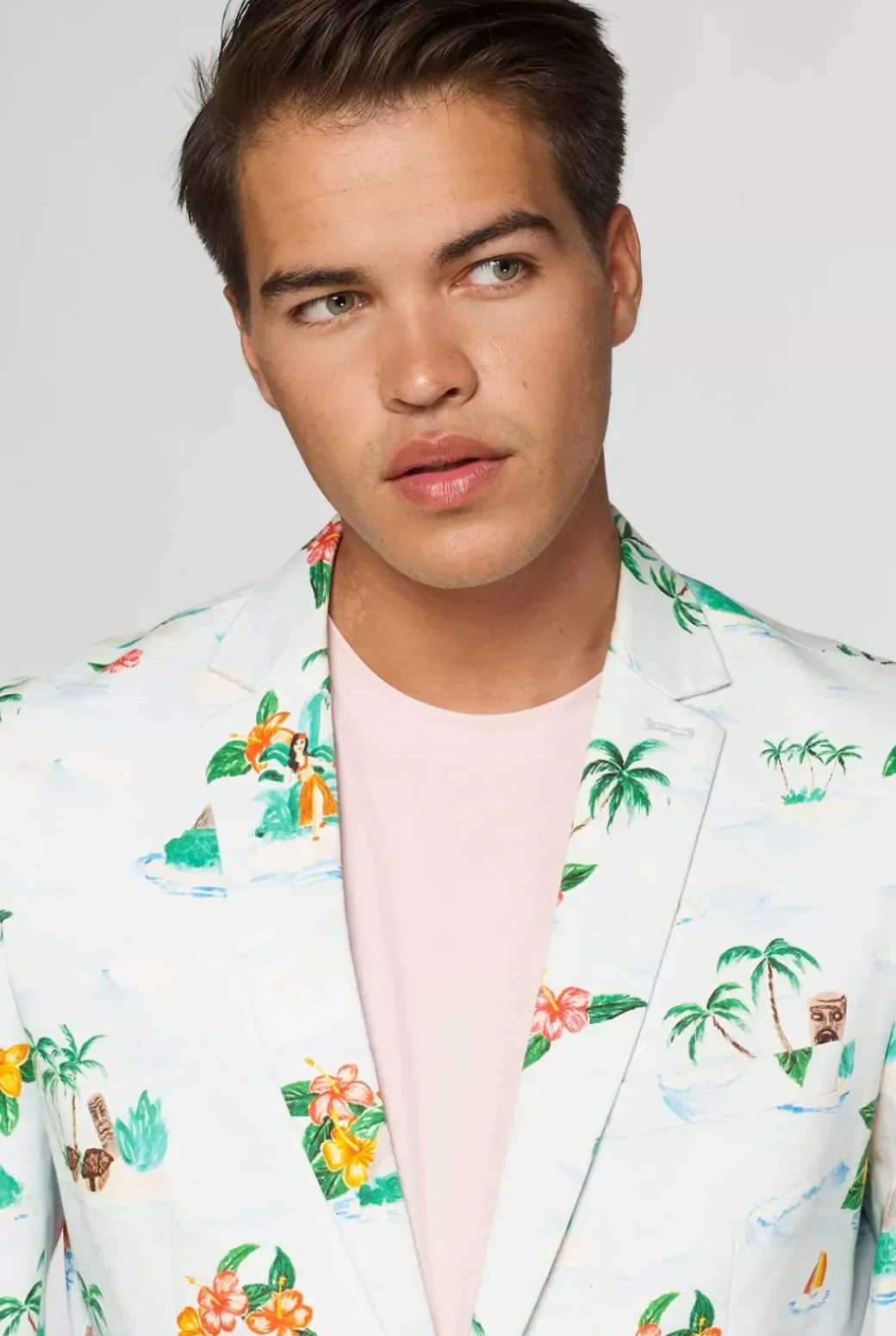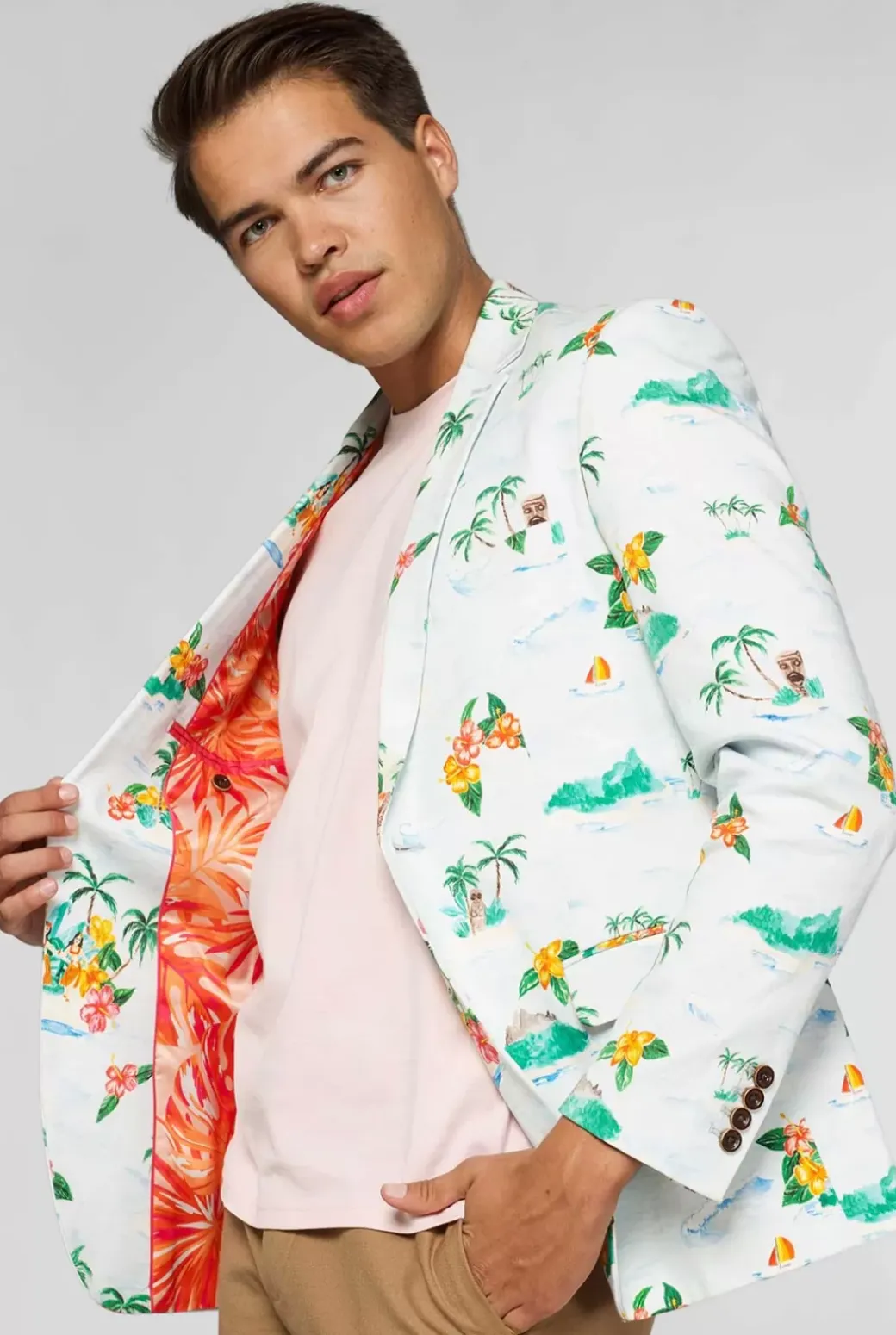 The Hawaiian Blazer Is Our Stylish New Take On The Classic Tropical Shirt. It’s An All-Over Printed Jacket Featuring A Hand-Painted Hawaiian Print And Wooden Buttons. Made Of Lightweight High-Quality Cotton, This Opposuits Deluxe Blazer Is Totally Summer-Proof. Just Give Your Warm-Weather-Wardrobe An Upgrade With This One.