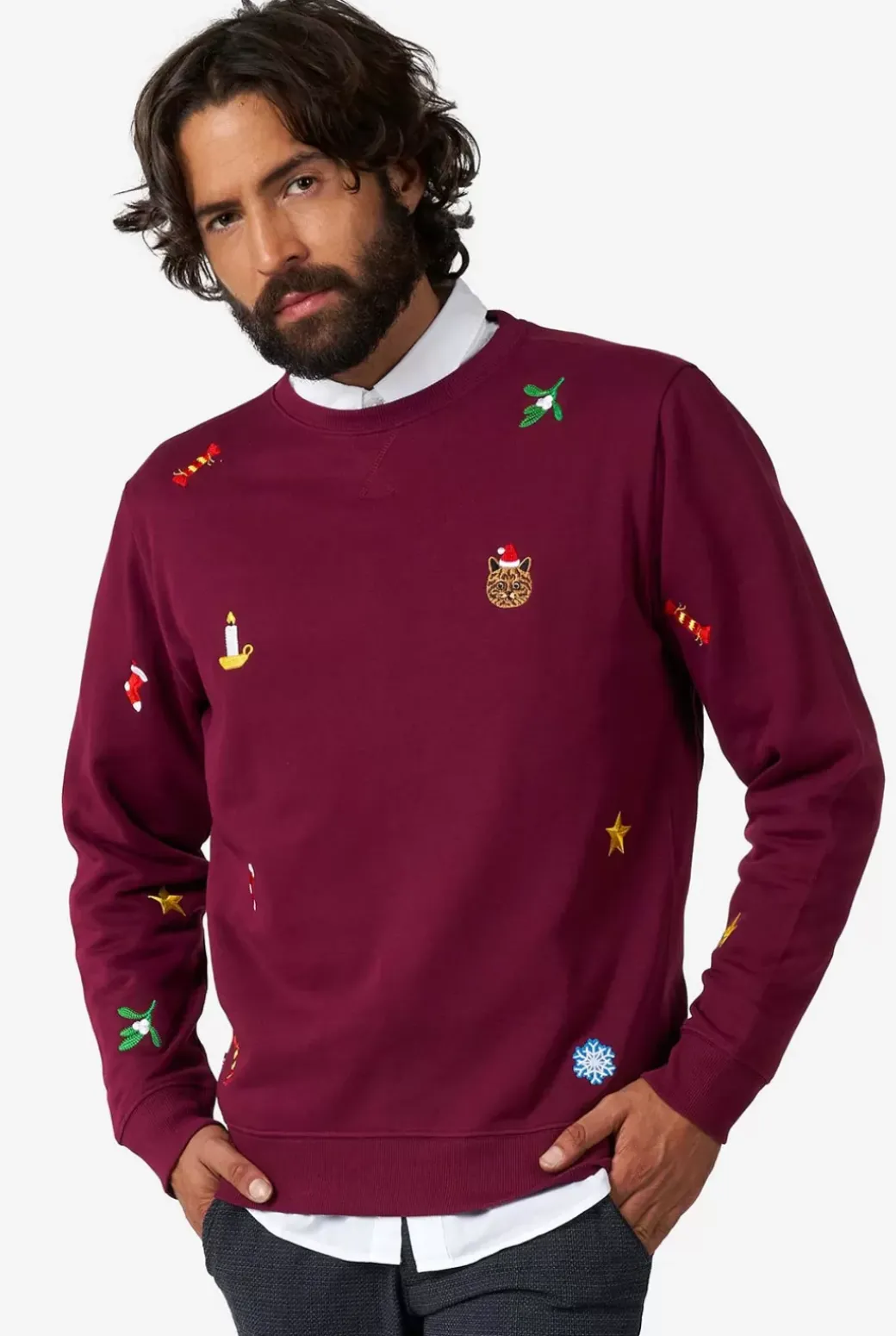 The Right Christmas Outfit Can Really Elevate Your Holiday Cheer. Designed With A Soft, Rich Velvet Fabric And A Slim Fit, This Opposuits Deluxe Blazer Instantly Upgrades Your High Style Christmas Look. It’s A Smooth Burgundy Blazer Embroidered With Christmas Icons, Which Will Make You Win At Every Christmas Party.