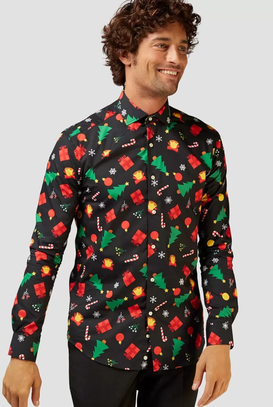Christmas Is The Ideal Occasion To Incorporate Some Festiveness Into Your Outfit. This Christmas Shirt With Colored Icons Can Be Paired With All Kinds Of Garments, From Casual To Formal, And Instantly Provides A Festive Look. In Other Words: It’s Great For Every Holiday-Related Occasion.