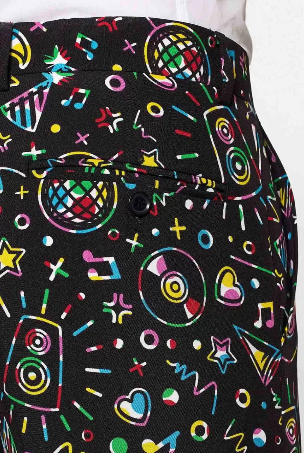Like To Have All Eyes On You As Soon As You Walk In? Wear This Disco Uit And Everyone Will Instantly Know You Are Ready To Get Down And Boogie. With Colorful, Fun Icons Printed All Over A Classic Black Base, You’Ll Be Sure To Look Hella Festive Whilst Keeping A Stylish Appearance.