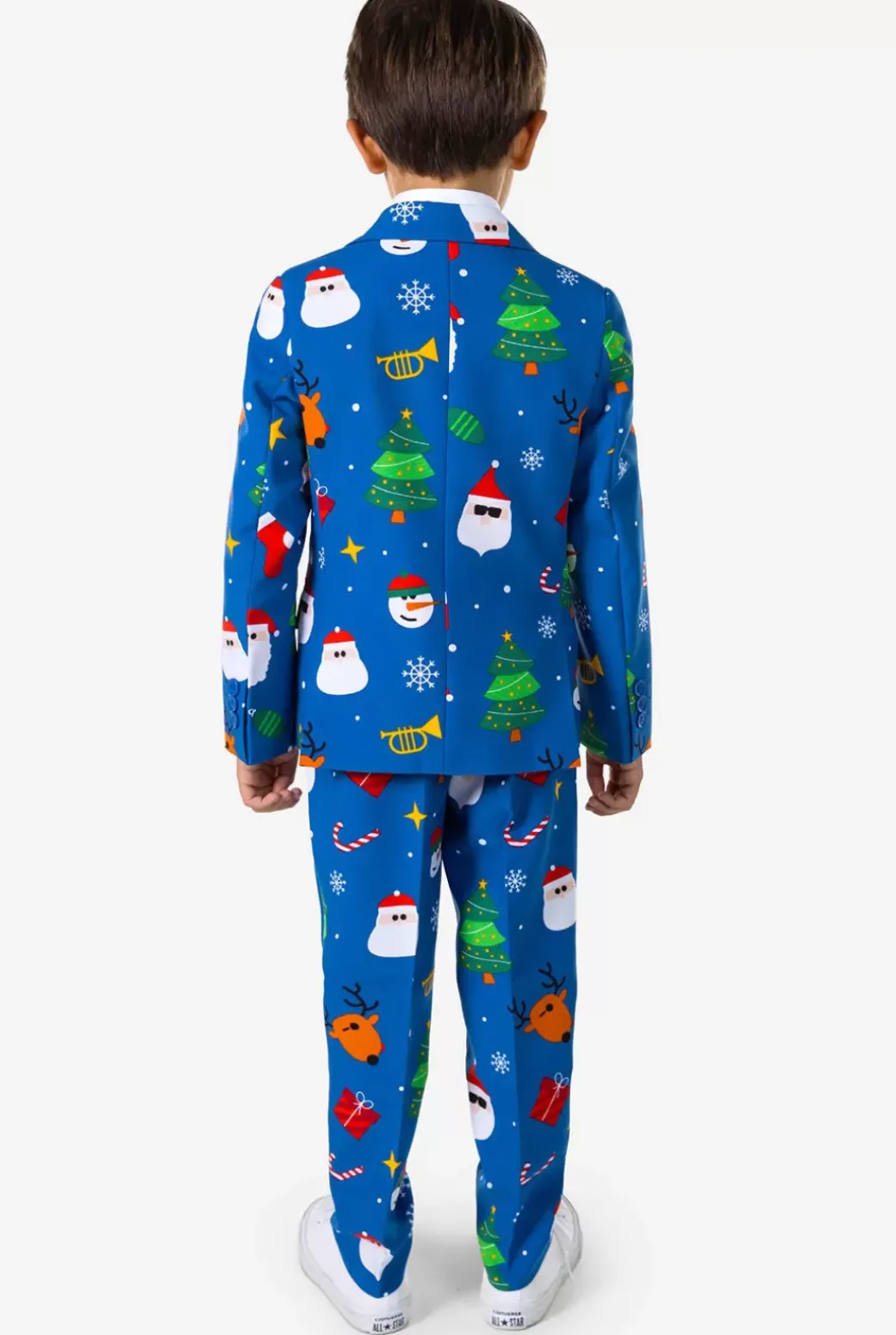 Does Your Kid Want To Look Extra Cool And Stand Out This Holiday Season? Look No Further Than The Blue Festivity Suit. It Has Santa, Reindeer, Christmas Trees And Glittering Stars, All It Needs Is You Wearing It!