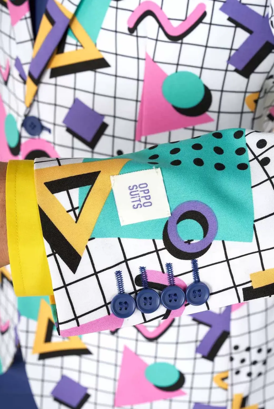 If You Are Into Bold Colors, Wacky Patterns, And Weird Shapes, Then This Is The Suit For You. Inspired By The Legendary Design Style Pioneered By The Memphis Group From The 80S, This Unique Suit Blends Bright Colors With Stylistic Shapes And Turns You Into A Walking Art Deco Fashionista. Retro Has Never Looked So Stylish, So Make Way For The Memphis Master!