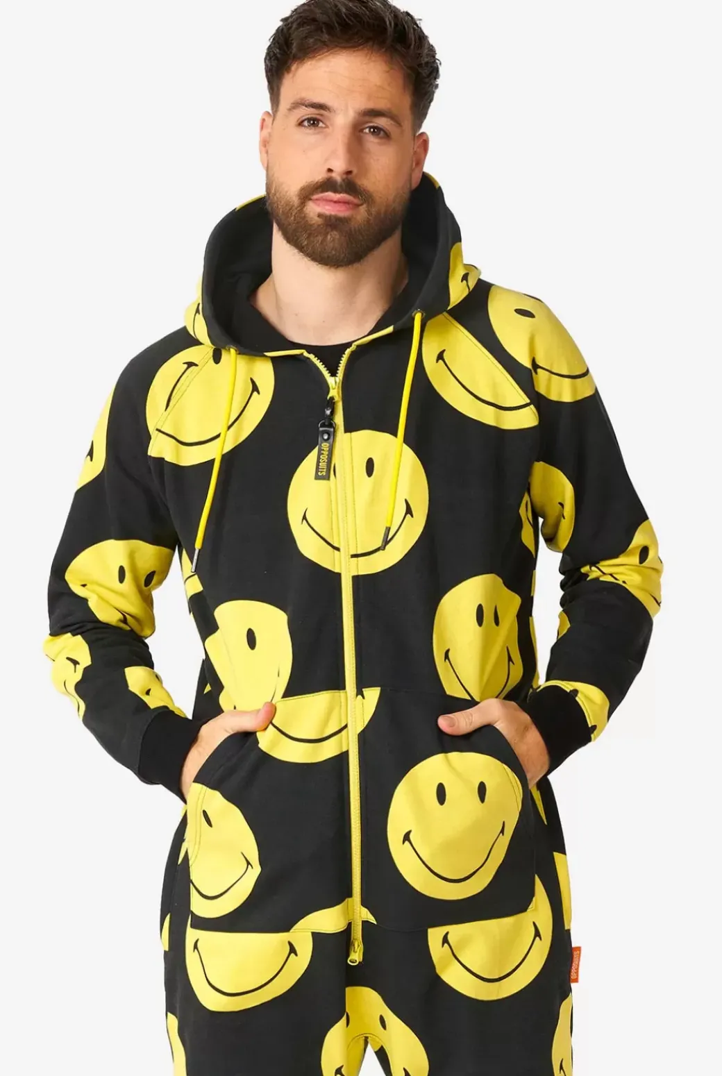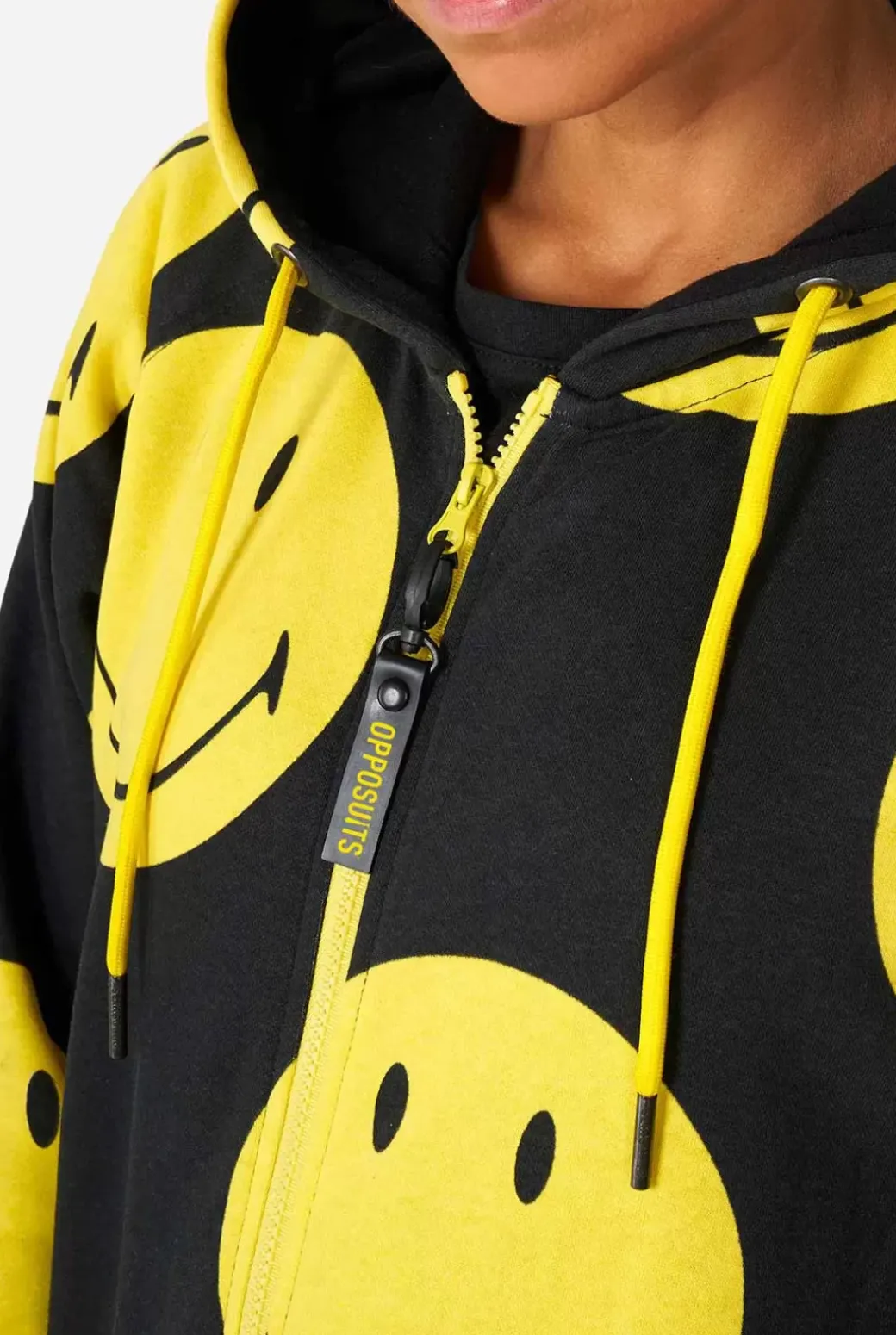 The Unisex Smiley® Classic Opposuits Onesie Features Two-Way Zippers, High-Quality Kangaroo Pockets And Side Pockets. The Hoodie Has Adjustable Cords For A Perfect Fit.