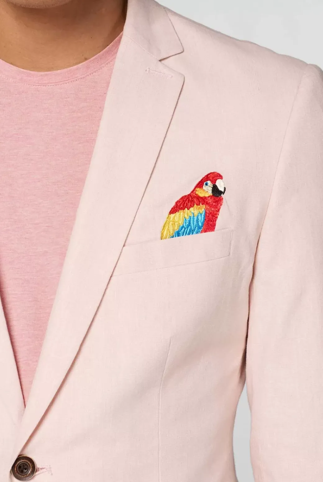 Spring And Summer Are The Seasons To Show Your Vivid Style Choices. This Soft Pink Blazer Is Made Of A Breezy, High-Quality Cotton-Linen Blend And Therefore Perfect To Keep You Cool While Maintaining A Sharp Look. Topped Off With Eye-Catching Embroidered Parrots And A Palm Leaves Lining, This Jacket Has It All: Fun, Luxury And Style.