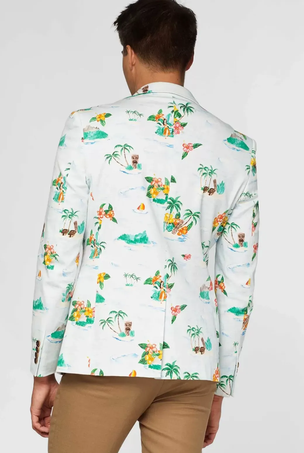 The Hawaiian Blazer Is Our Stylish New Take On The Classic Tropical Shirt. It’s An All-Over Printed Jacket Featuring A Hand-Painted Hawaiian Print And Wooden Buttons. Made Of Lightweight High-Quality Cotton, This Opposuits Deluxe Blazer Is Totally Summer-Proof. Just Give Your Warm-Weather-Wardrobe An Upgrade With This One.