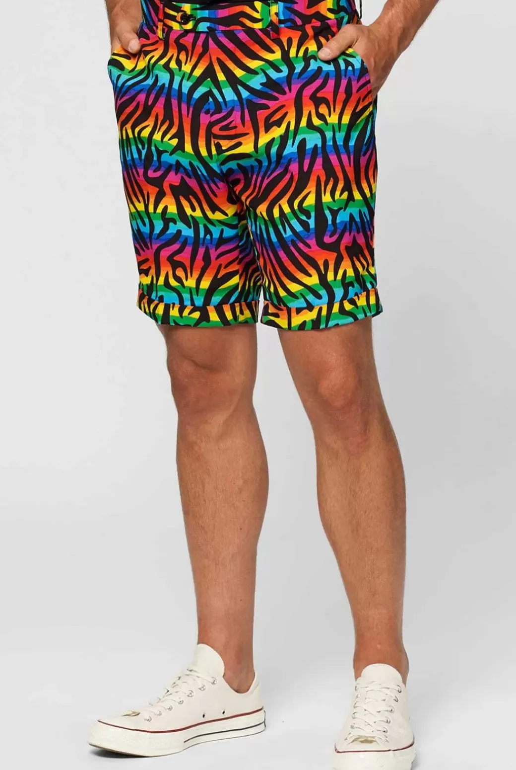 Express Yourself In This Fun, Colorful & Breezy Style. The Attention-Grabbing, Zebra-Printed-Rainbow Suit Comes With Shorts, Short Sleeves & A Tie To Keep You Cool And Comfortable On Any Sun-Filled Occasion This Summer. Whether It’s A Pride Event, Festival Or Poolside Party, People Will Be Hunting Your Stripes For All The Right Reasons.