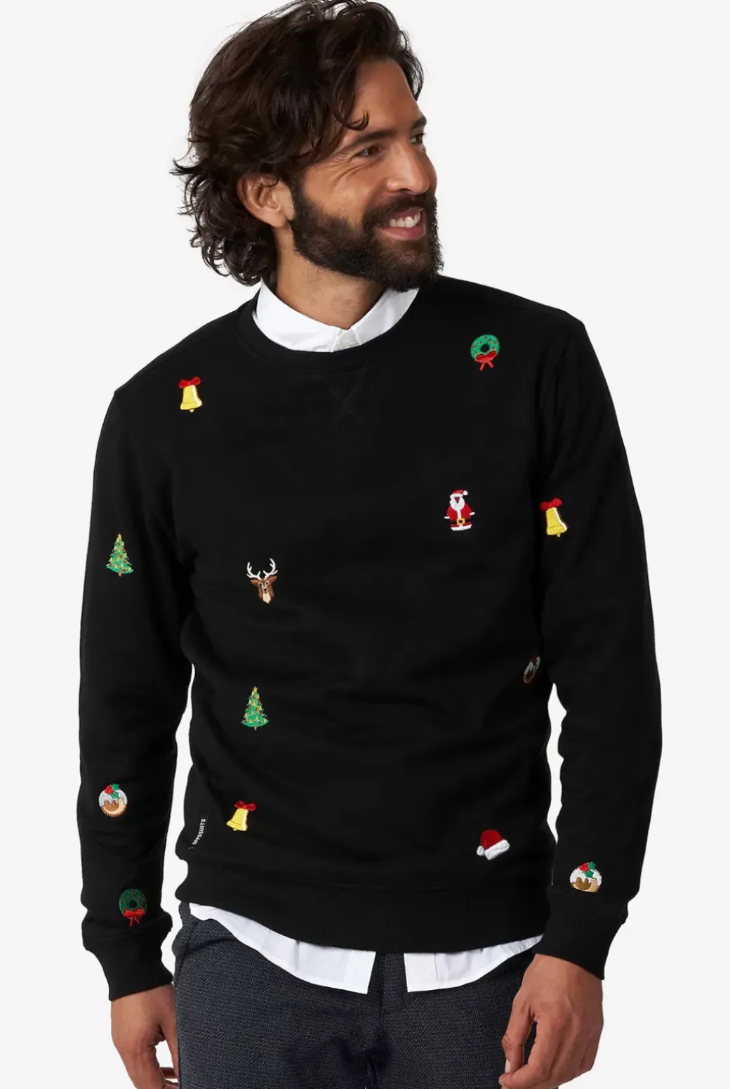 The Right Christmas Outfit Can Really Elevate Your Holiday Cheer. Designed With A Soft, Rich Velvet Fabric And A Slim Fit, This Opposuits Deluxe Blazer Instantly Upgrades Your High Style Christmas Look. It’s A Smooth Black Blazer Embroidered With Christmas Icons, Which Will Make You Win At Every Christmas Party.